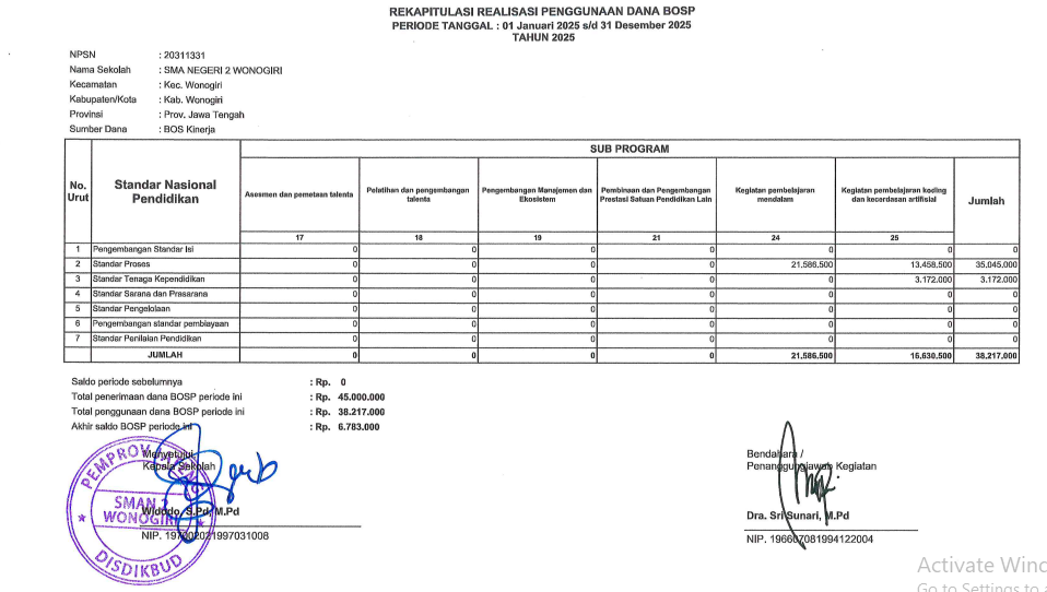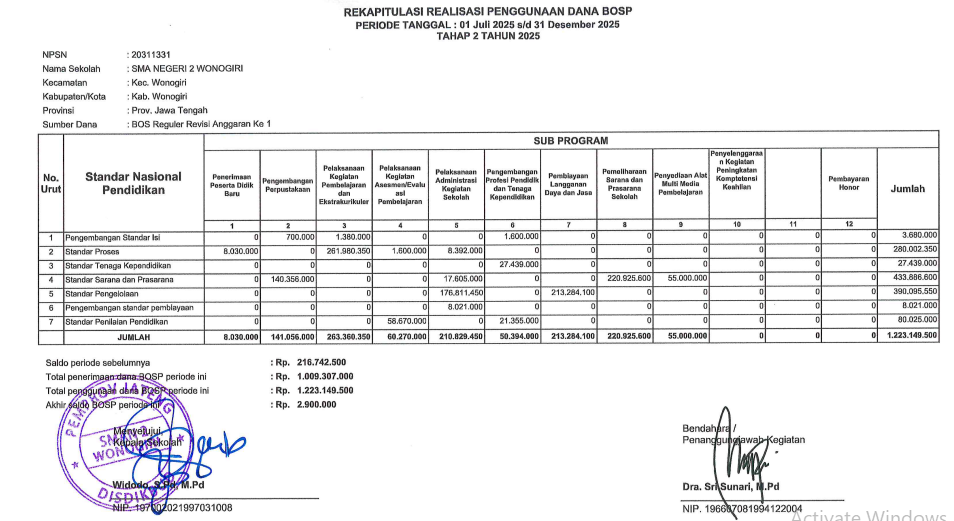 REKAPITULASI REALISASI PENGGUNAAN DANA BOSP